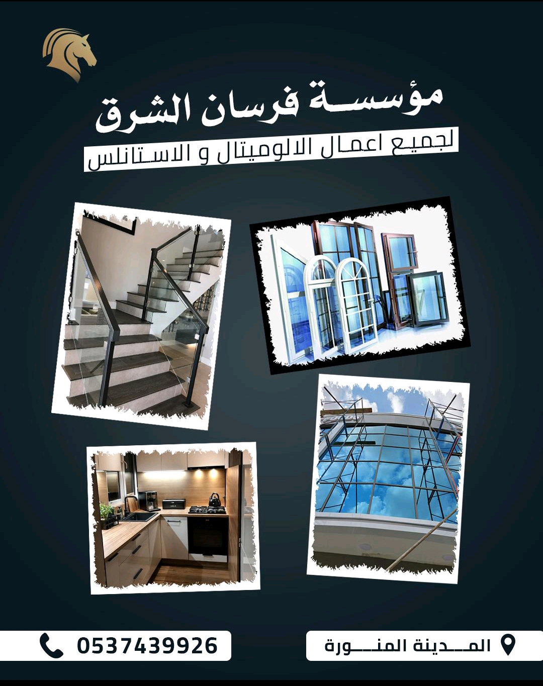 مؤسسة فرسان الشرق الجديد متخصصة في تركيب الأبواب والشبابيك والواجهات الزجاجية والمطابخ الألومنيوم بجودة عالية ودقة في التنفيذ داخل المدينة المنورة